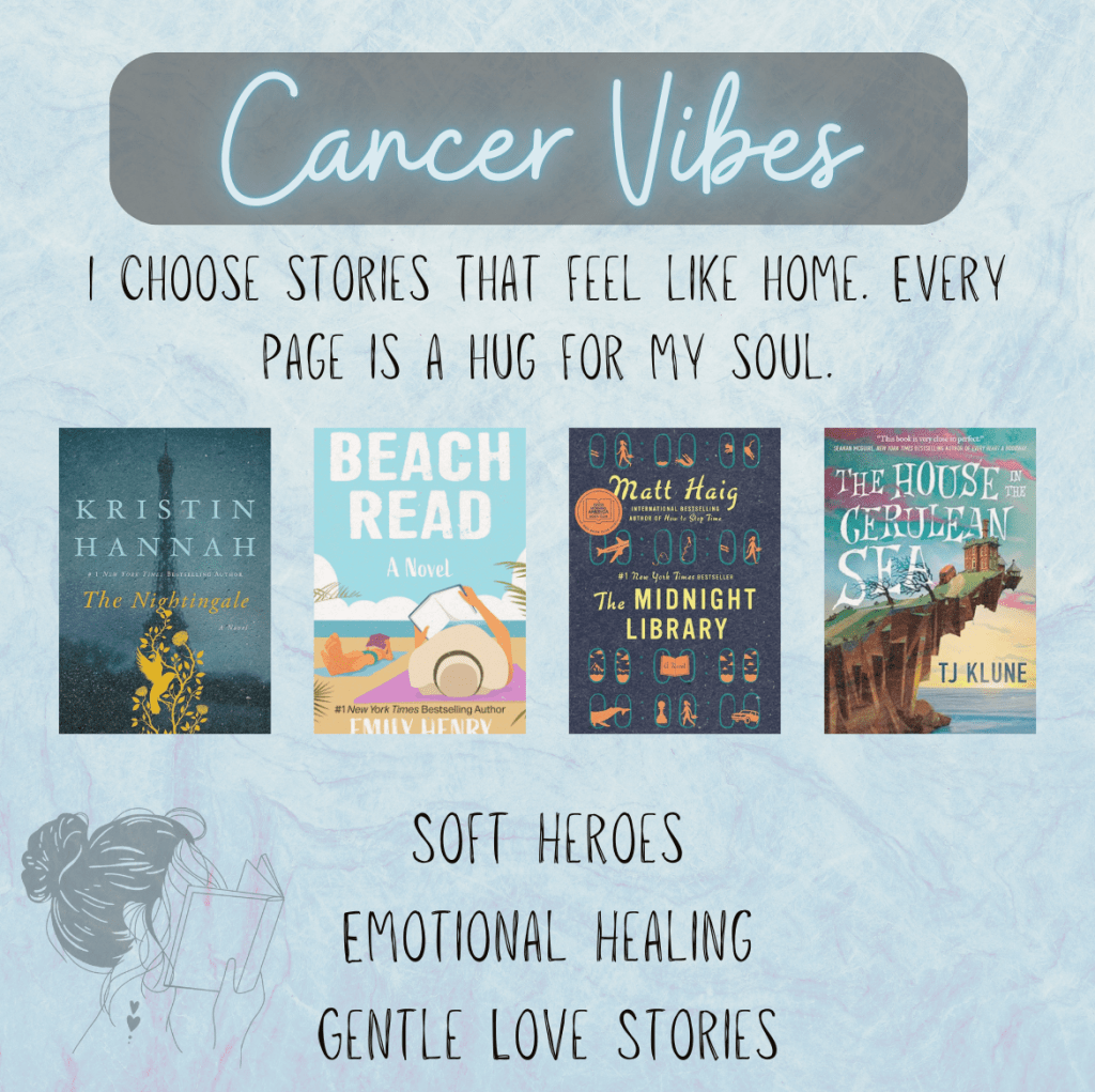 Ready to let your sign choose your next read? Save this post, share it with your fellow book babes, and remember: the stars might not tell your future, but they can definitely curate your bookshelf.