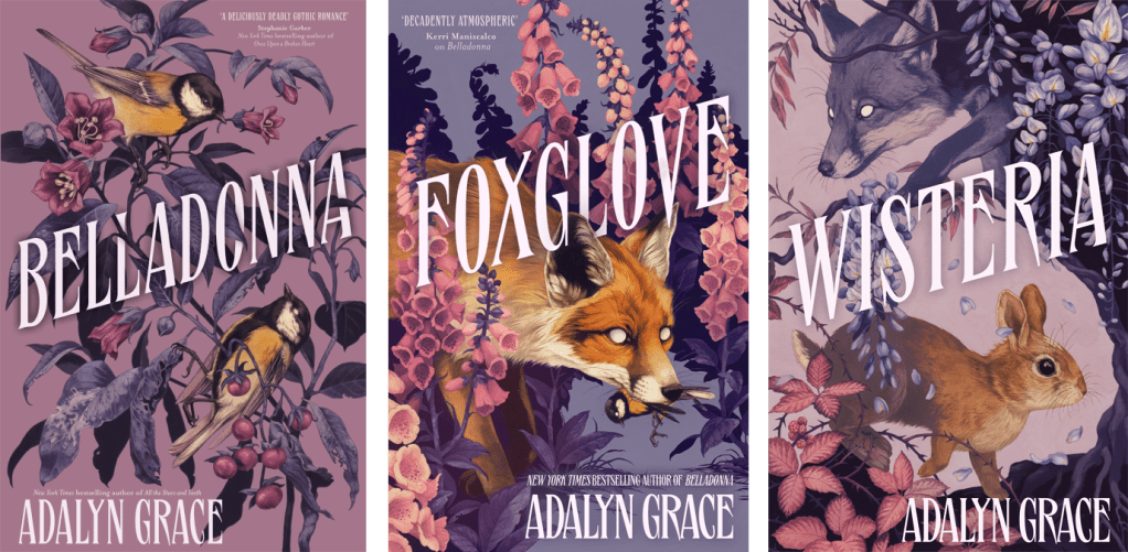 If you’re anything like me, a lover of all things gothic, romantic, and just a touch morbid; then the Belladonna series by Adalyn Grace will absolutely steal your heart. I recently devoured all three books (Belladonna, Foxglove, and Wisteria) and I’m not exaggerating when I say this trilogy is one of my new all-time favorites. Each book is hauntingly beautiful, exquisitely written, and brimming with rich atmosphere, star-crossed romance, and spine-tingling mystery. I gave all three books an easy 5-star rating.